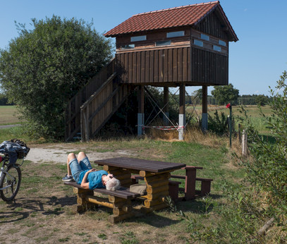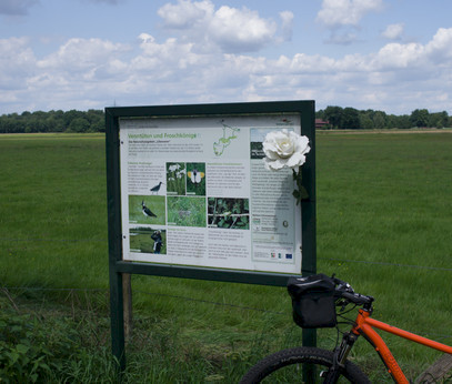 … heißt die Route, die in den östlichsten Zipfel des Tecklenburger Landes führt. Die Parklandschaft des Münsterlandes par excellence erwartet uns hier. Fast überall säumen Hecken und kleine Bauernwälder den Weg. Wer an einem lauen Frühlingsabend unterwegs ist, trifft hier mit etwas Glück den sonst seltenen Laubfrosch und nimmt an seinem „Rap-Konzert“ teil. Beeindruckend! Den Höhenzug des Teutoburger Waldes fast immer im Blickfeld bleibt die Route im Flachen und führt ohne nennenswerte Steigungen ans Ziel.